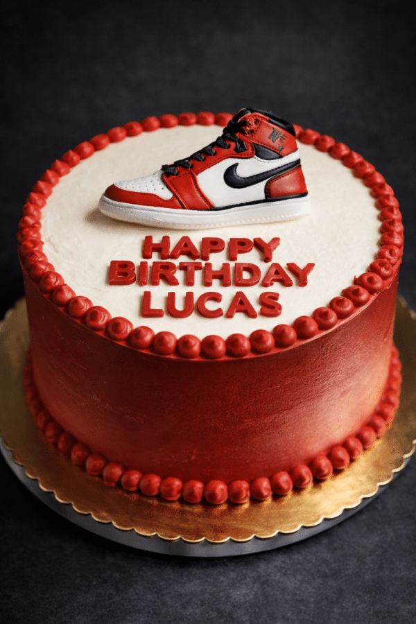 Striking, modern, and instantly recognizable, this cake transforms sneaker culture into an unforgettable centerpiece. It blends clean lines, confident styling, and meticulous craftsmanship — making it perfect for celebrations where identity and passion matter.