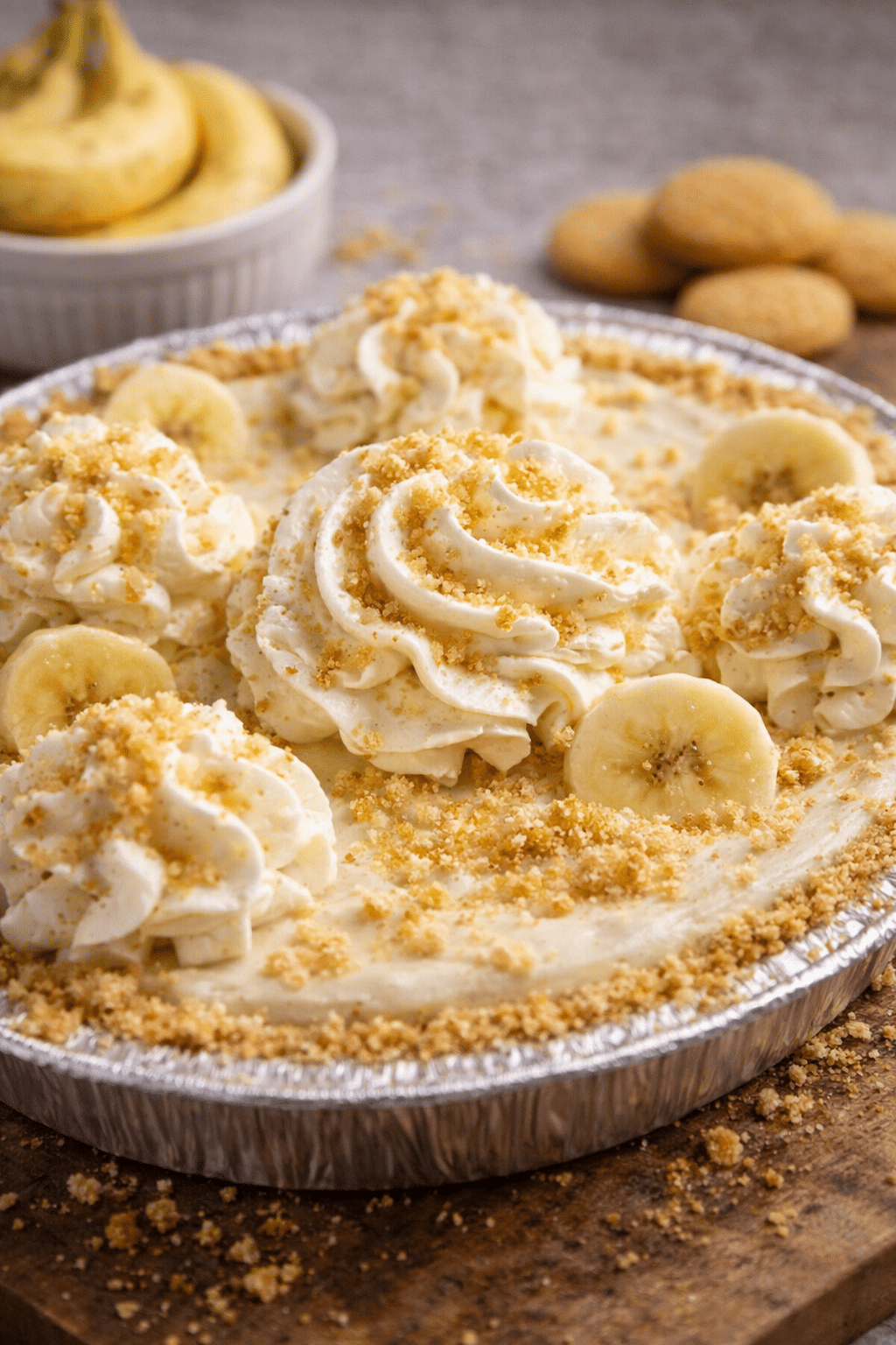 Elevate your dessert game with our irresistible Banana Cream Pie. This decadent delight is a masterpiece of flavors, featuring a buttery, flaky crust, a rich and creamy banana custard filling, and a light, airy whipped cream topping.