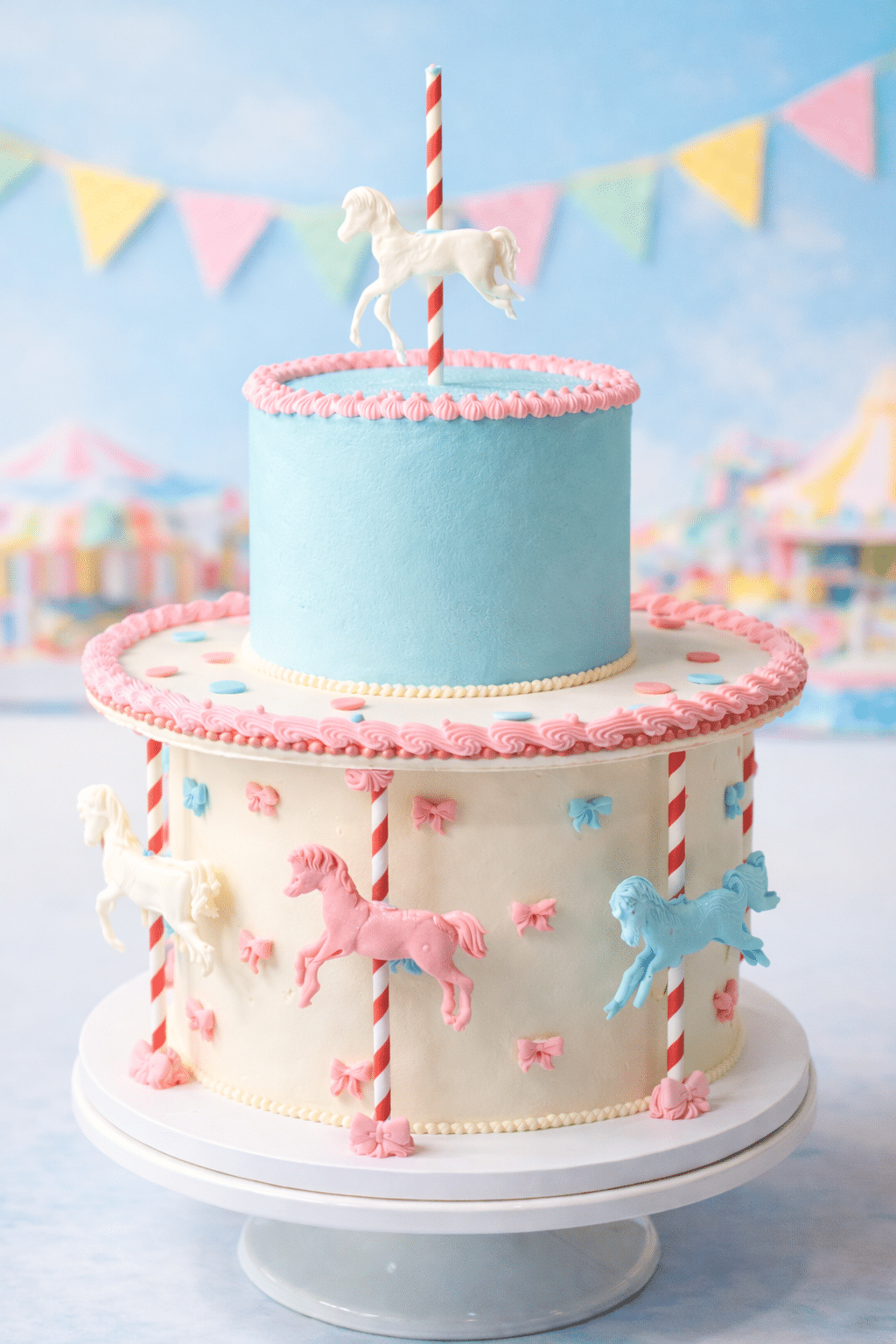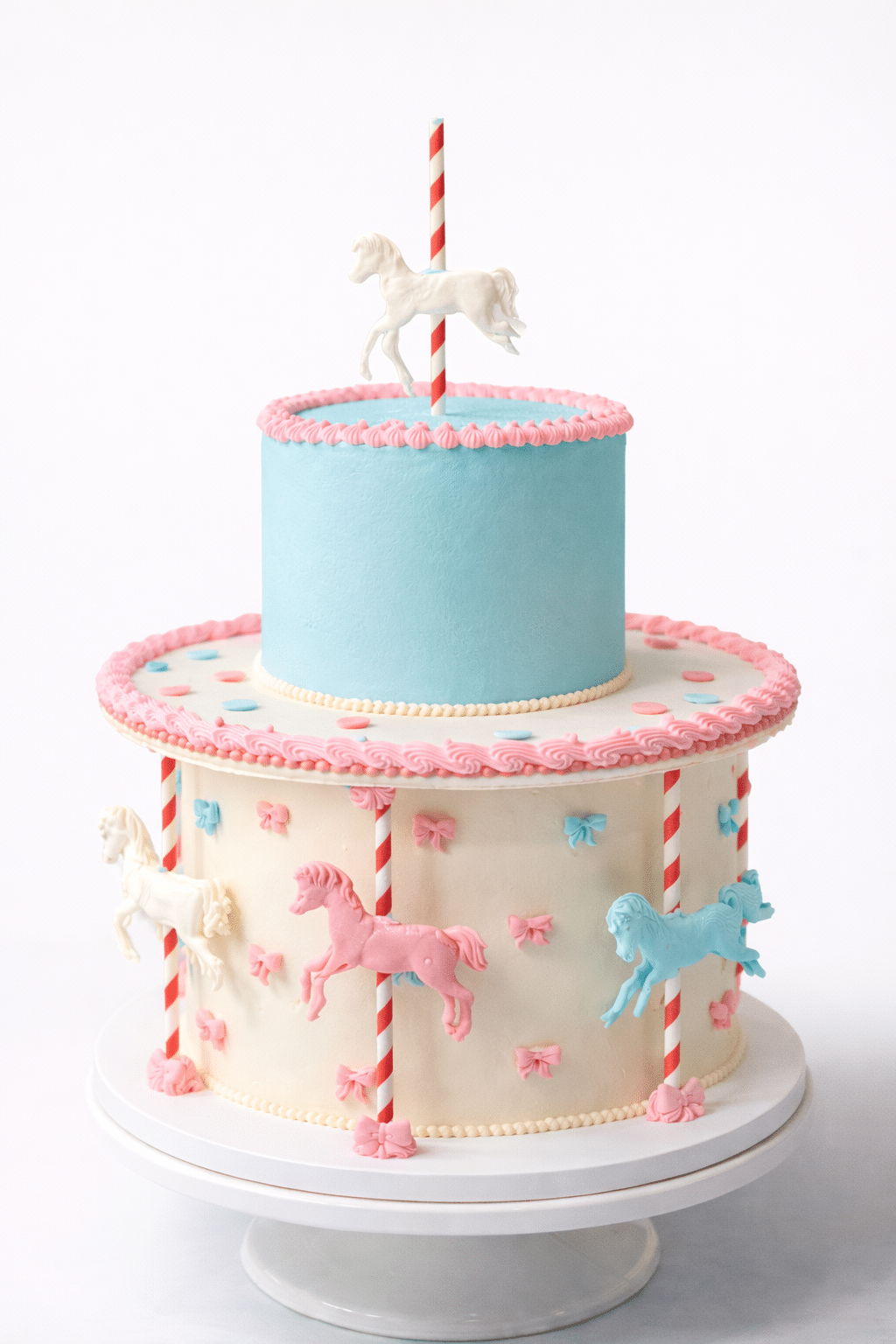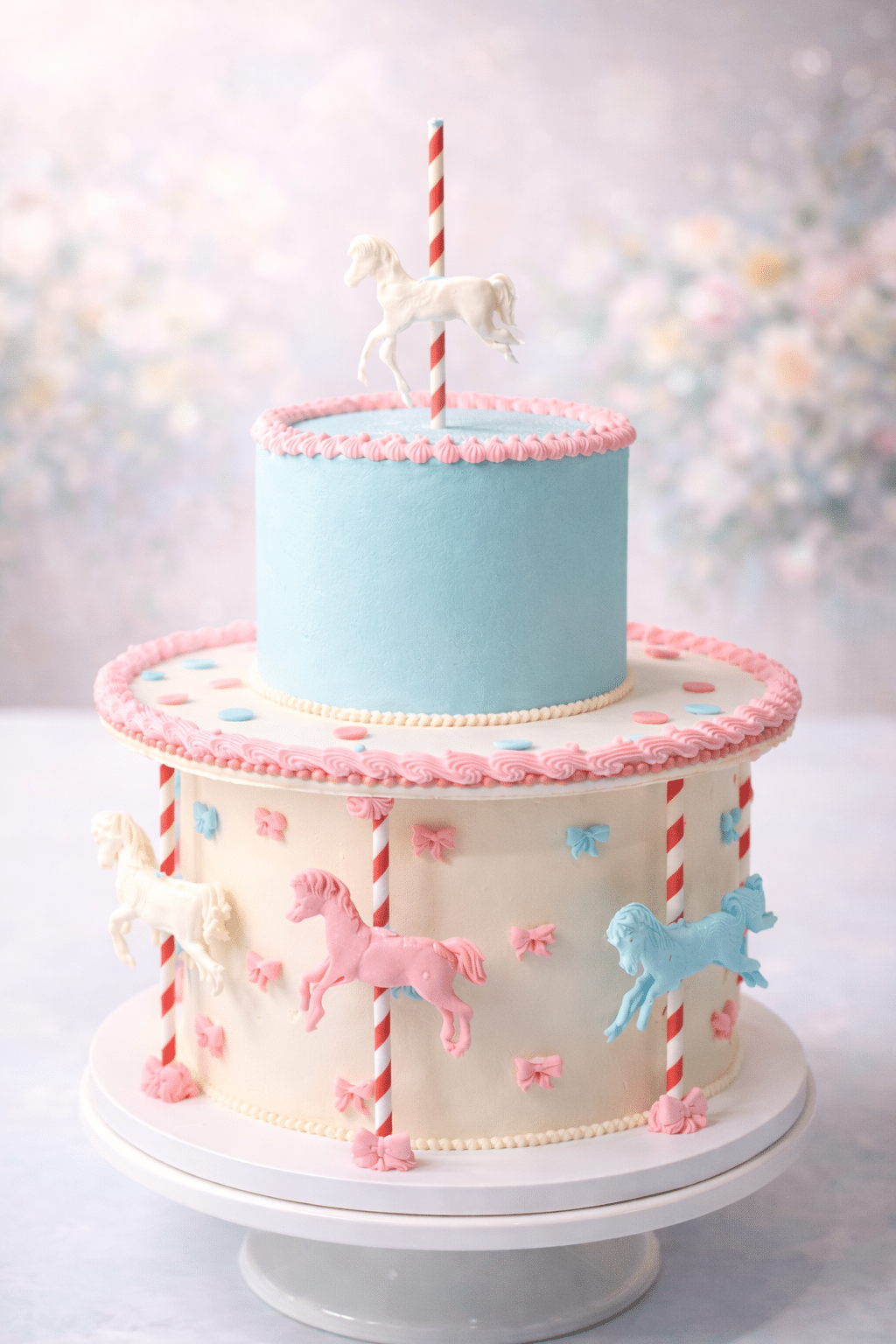 The Carousel Cake is designed to bring nostalgia, magic, and pure joy to life — transformed into an unforgettable celebration centerpiece.