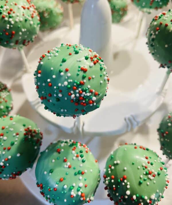 Hand-decorated Christmas cake pops dipped in festive red, green, and winter designs. Perfect for parties, gifting, and holiday celebrations. Available for pickup or delivery.