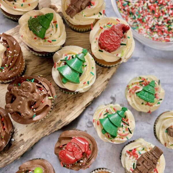 Handcrafted holiday cupcakes topped with festive Christmas décor. Freshly baked in Vanilla, Chocolate, Red Velvet, or Oreo and beautifully boxed for gifting, parties, or holiday dessert tables. Available for pickup or delivery.