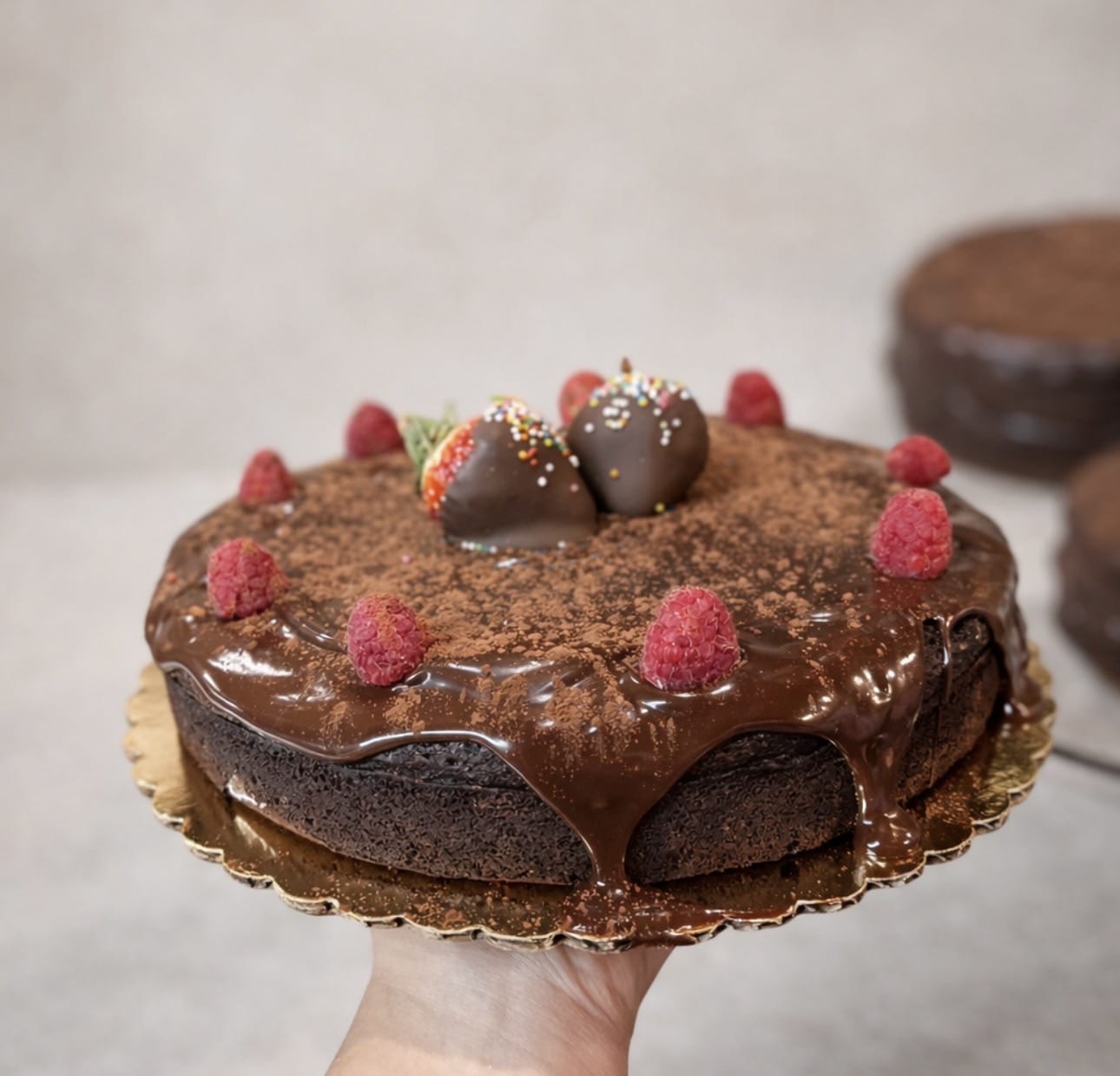Made with premium chocolate and baked to a dense, velvety texture, this elegant cake delivers deep chocolate flavor in every bite. Finished with fresh raspberries for a bright, balanced touch, it’s a beautiful and classic Passover dessert for sharing with family and friends.