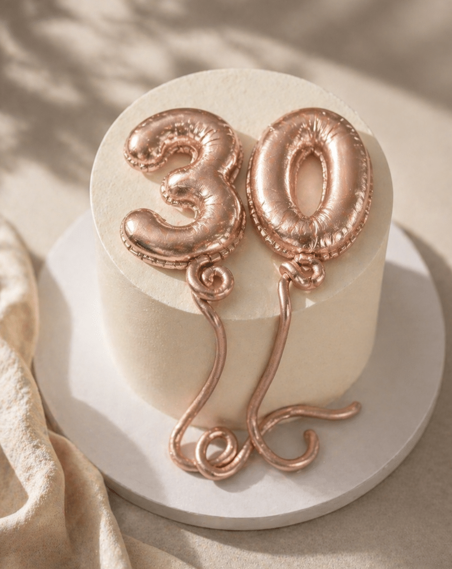 - Edible balloon-style numbers (gold, silver, or rose gold)