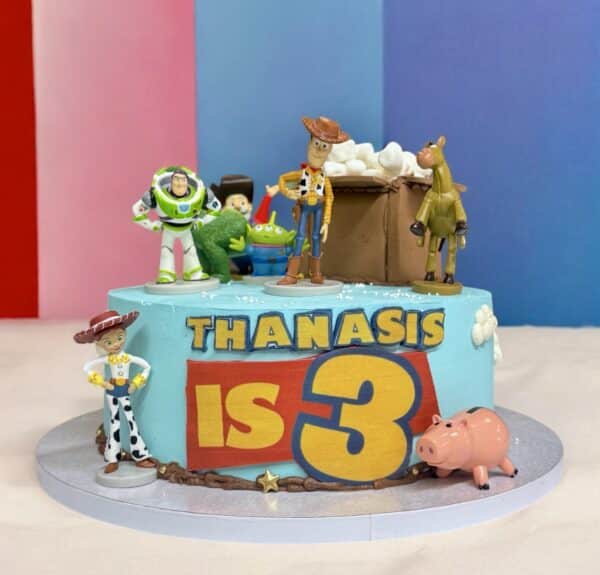 Inspired by a beloved animated toy universe, this cake captures the playful spirit of adventure, friendship, and fun. With bright colors, cheerful details, and a lively design, it instantly becomes the centerpiece of any kids’ birthday celebration.